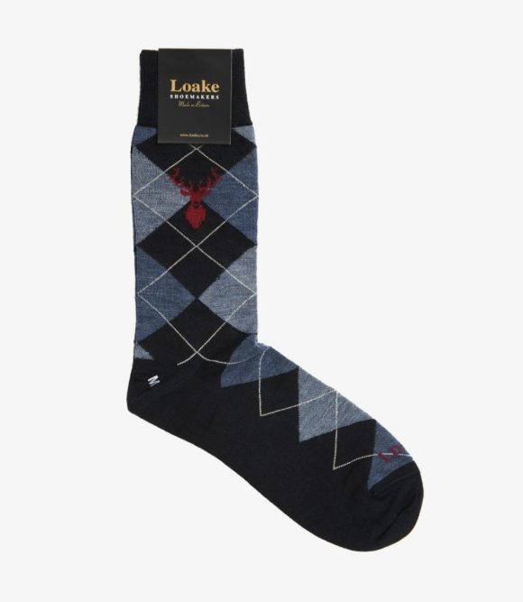 Premium Loake socks with a navy and blue chequered background pattern. These Loake accessories are perfect as an everyday sock, or even as a gift.