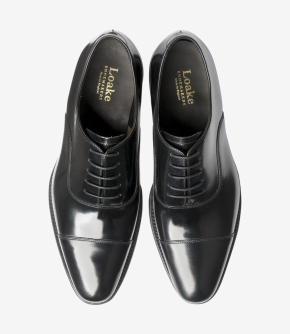 Stylish toe cap oxford shoe, made with polished leather, made in England.